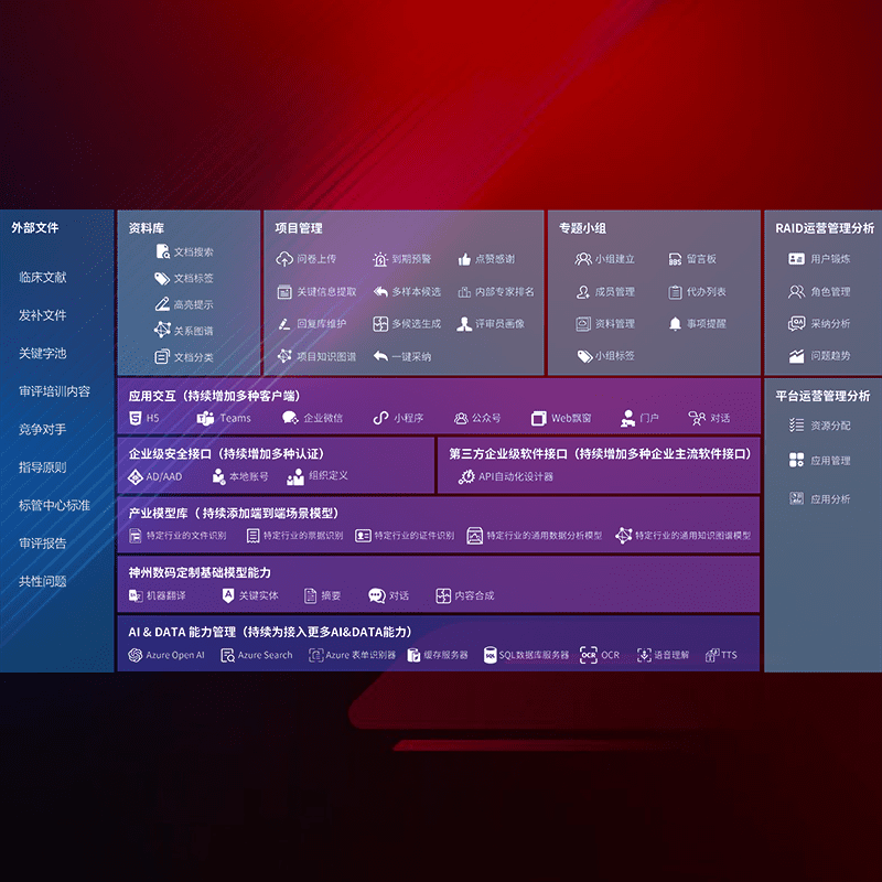 医疗器械产品上市前,,要熟悉严格与繁复评审标准,,,,整理分析监管机构指导文件中的海量信息。。。企业急需一个智能化解决方案,,,提升知识管理效率,,,,提高评审通过率,,,,以提升其市场竞争力。。